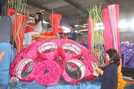 Giant flower structures built with iron and wire to be decorated with thousand of flowers for the Madeira Flower Festival float.